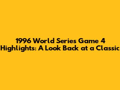 Hey baseball fanatics, let's rewind the clock and dive into the thrilling 1996 World Series Game 4! This game was a pivotal moment in the series, and it's still talked about by baseball enthusiasts. Buckle up, because we're about to relive some of the most memorable highlights, the key players, and the lasting impact this game had on the series. Get ready to experience the nostalgia of baseball history.