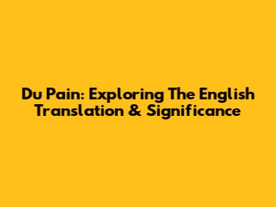 Du Pain: Exploring The English Translation & Significance