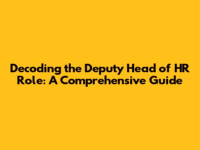 Decoding The Deputy Head Of HR Role: A Comprehensive Guide