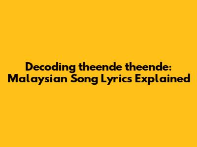 Hey music lovers! Ever found yourself completely hooked on a song but totally lost when it comes to the lyrics? Well, you're not alone! Today, we're diving deep into the world of 'theende theende,' a Malaysian song that's been making waves. We'll be breaking down the lyrics, exploring the meaning behind the words, and trying to understand what makes this song so captivating. So, grab your headphones, get comfy, and let's unravel the mystery of 'theende theende' together. This is going to be a fun ride, and by the end, you'll have a much better appreciation for this awesome Malaysian track.