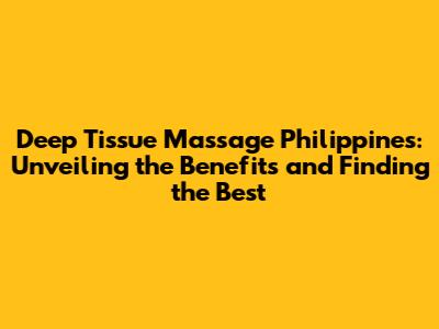 Hey guys! Ever feel like your muscles are tighter than a drum, knots are setting up camp, and you just need some serious relief? If that sounds familiar, then you're in the right place! We're diving deep into the world of deep tissue massage right here in the Philippines. This isn't your average spa day; we're talking about a targeted, therapeutic approach designed to ease chronic pain, release those stubborn knots, and leave you feeling like a whole new person. Whether you're a local or just visiting, finding a top-notch deep tissue massage in the Philippines can be a game-changer for your well-being. So, let's get into the nitty-gritty and discover everything you need to know, from the benefits and techniques to finding the best therapists and spas.