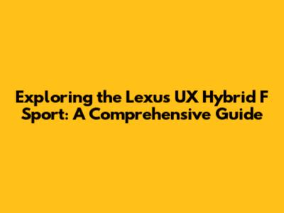 Exploring The Lexus UX Hybrid F Sport: A Comprehensive Guide