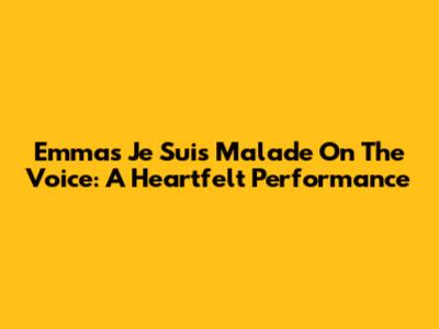 Emma's 'Je Suis Malade' On The Voice: A Heartfelt Performance