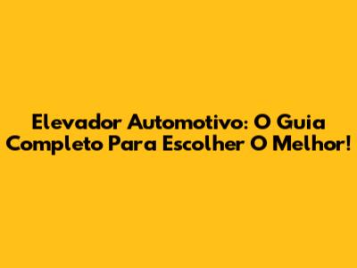Elevador Automotivo: O Guia Completo Para Escolher O Melhor!