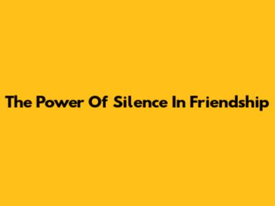 The Power Of Silence In Friendship