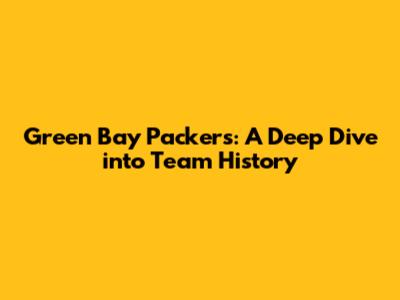 Green Bay Packers: A Deep Dive Into Team History