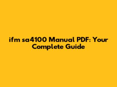 What to Expect Inside Your ifm sa4100 Manual PDF