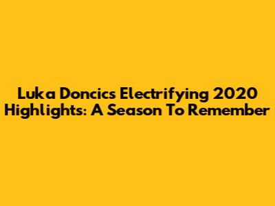 Luka Doncic's Electrifying 2020 Highlights: A Season To Remember