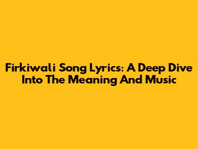 Firkiwali Song Lyrics: A Deep Dive Into The Meaning And Music