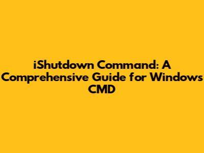 The ***ishutdown*** command*** is not a standard Windows command. It's most likely a custom or third-party tool designed to manage shutdown, restart, and other power-related operations on a Windows system. Since it's not built-in, you won't find it in the default list of CMD commands. Instead, it would have been created or installed separately. Think of it as a specialized program that gives you more control over your computer's power states through the command line. If you're dealing with a system administration task, custom scripts, or specific software requirements, such a command can be incredibly useful.
