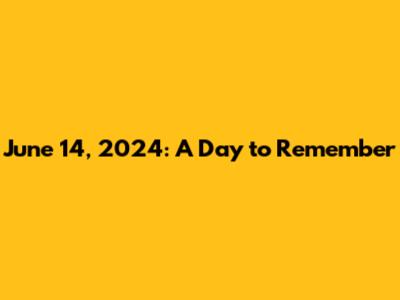 Hey guys! Let's dive into what made June 14, 2024, a day worth remembering. We'll be looking at everything from significant events to the overall vibe of the day. Get ready for a trip down memory lane, or perhaps a first-time look at a date that might just become pretty important to you. Whether it's historical happenings, cultural milestones, or even just some cool personal stories, we are going to explore it all. Let's start with the basics, shall we?