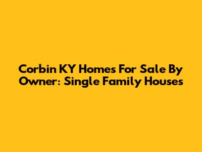 Corbin KY Homes For Sale By Owner: Single Family Houses