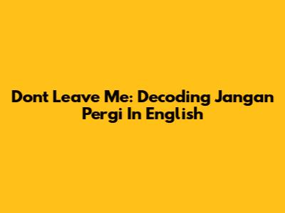 Don't Leave Me: Decoding "Jangan Pergi" In English