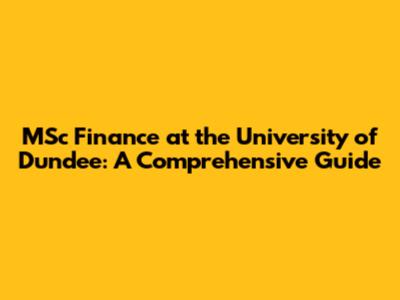 MSc Finance At Dundee: Your Path To Financial Success