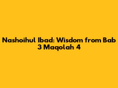 Nashoihul Ibad: Wisdom From Bab 3 Maqolah 4