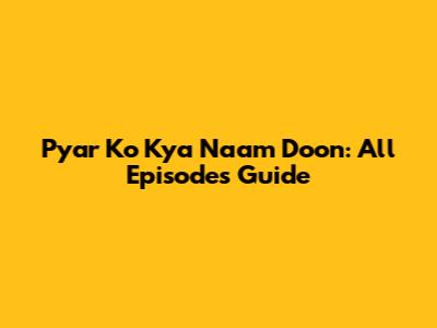 Pyar Ko Kya Naam Doon: All Episodes Guide