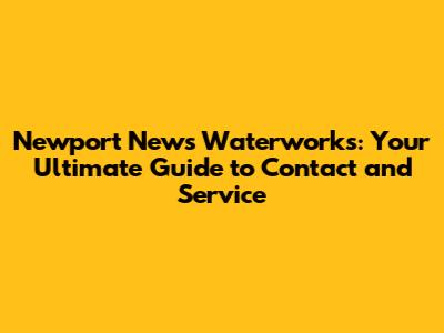 Newport News Waterworks: Contact & Service Guide