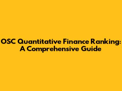 OSC Quantitative Finance Ranking: A Comprehensive Guide