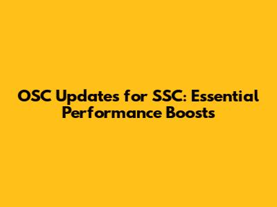 OSC Updates For SSC: Essential Performance Boosts