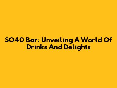 SO40 Bar: Unveiling A World Of Drinks And Delights
