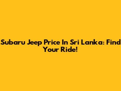 Subaru Jeep Price In Sri Lanka: Find Your Ride!