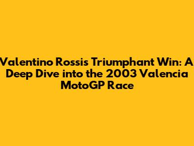 The 2003 Valencia MotoGP race remains an iconic moment in the illustrious career of Valentino Rossi. This victory not only showcased his exceptional talent but also solidified his position as one of the greatest motorcycle racers of all time. Guys, let's dive deep into what made this race so special, the background leading up to it, the key moments during the race, and its lasting impact on the world of MotoGP.