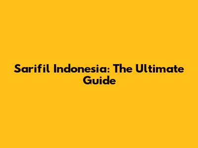 Sarifil Indonesia: The Ultimate Guide