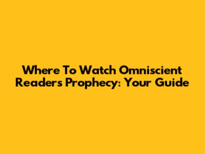 Where To Watch 'Omniscient Reader's Prophecy': Your Guide