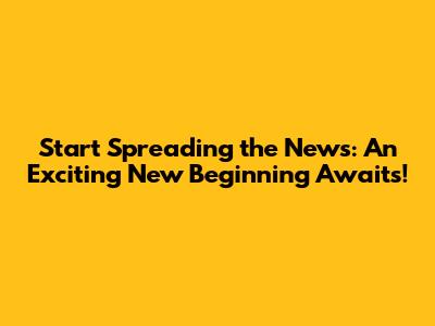 Start Spreading The News: An Exciting New Beginning Awaits!