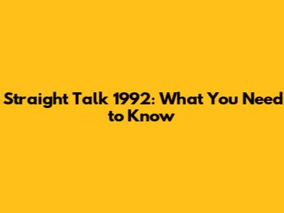 Straight Talk 1992: What You Need To Know