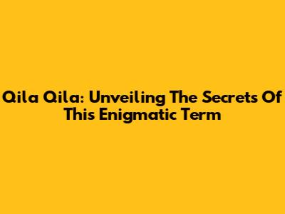 Qila Qila: Unveiling The Secrets Of This Enigmatic Term