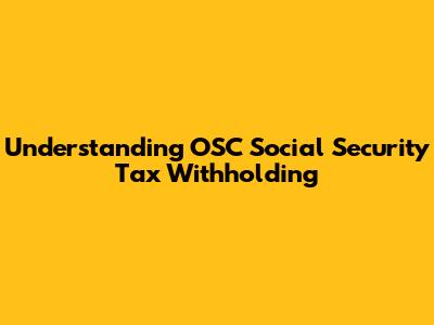 Understanding these fundamentals is essential for grasping the role of OSC Social Security tax withholding in your overall financial picture. Now that we have a clear understanding of what Social Security tax is, let's explore the specifics of OSC and its involvement in the withholding process.