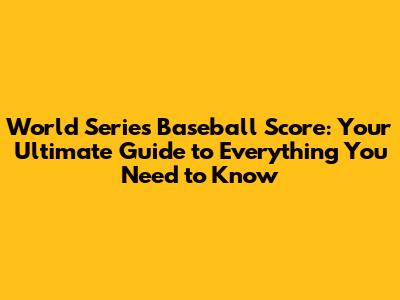 World Series Baseball Score: Your Ultimate Guide